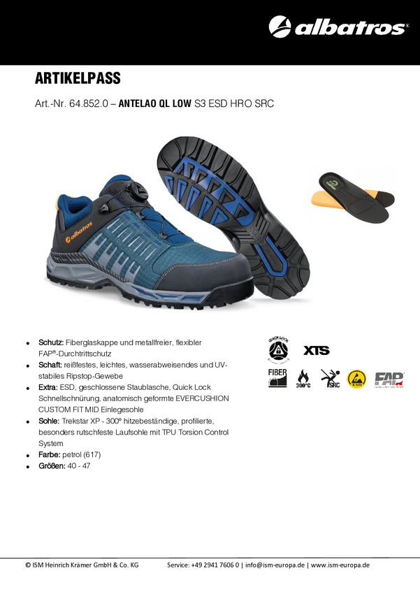 Albatros ANTELAO QL LOW S3 ESD HRO SRC 648520617000046 Obuwie ochronne S3 Rozmiar buta (EU): 46 czarny 1 par(a)
