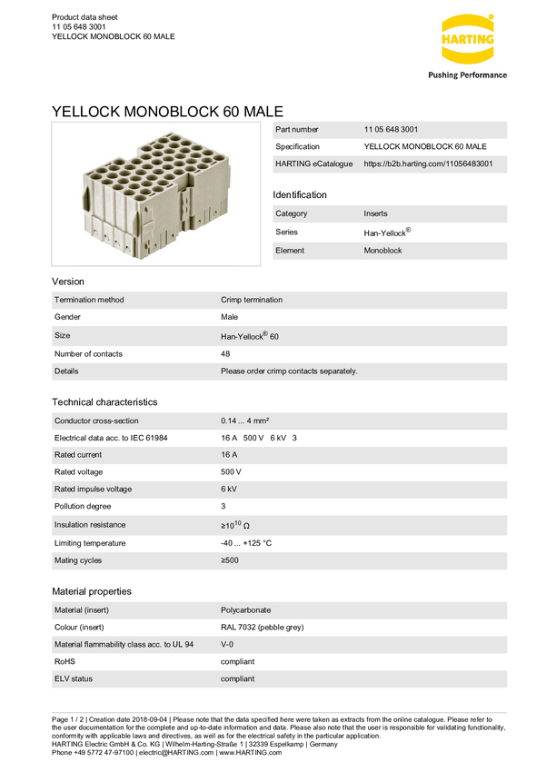 Złącze przemysłowe 11 05 648 3001 Harting Zawartość: 1 szt.