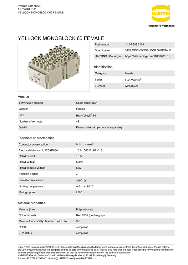 Wkładka gniazda Harting 11 05 648 3101, 1 szt.
