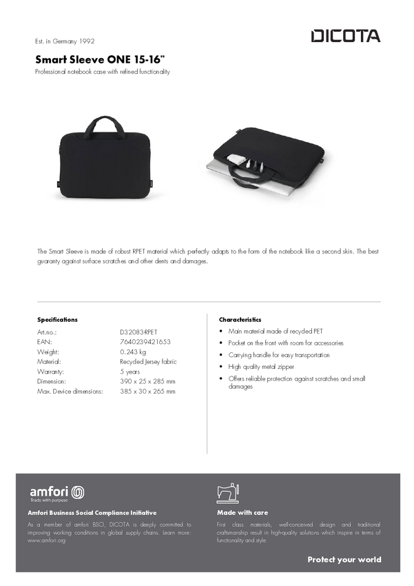 Dicota Smart Sleeve ONE 38,1cm 40,64cm Rękaw Futerał na laptopa