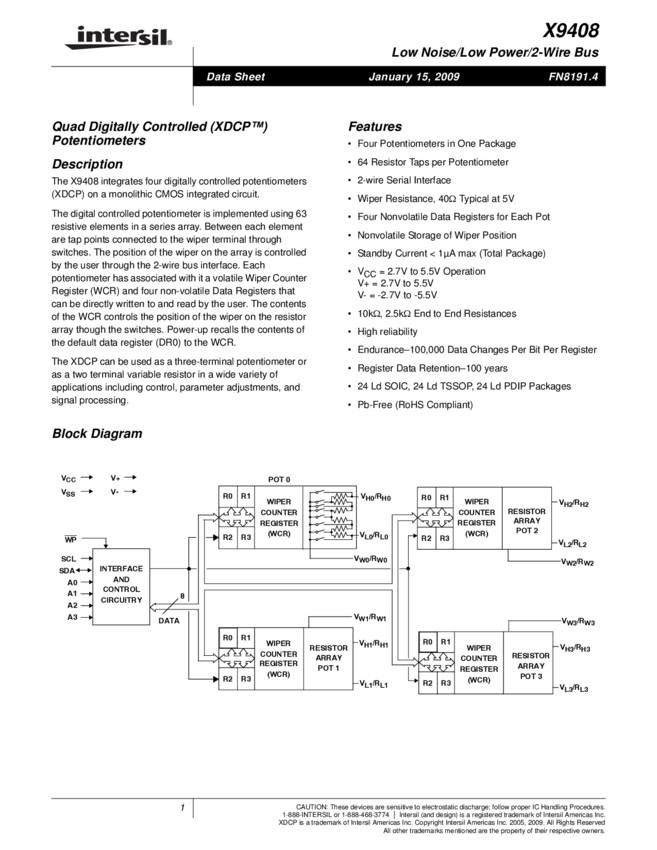 Digital Potentiometer 64POS 10KOhm Quad 20-Pin SOIC T/R