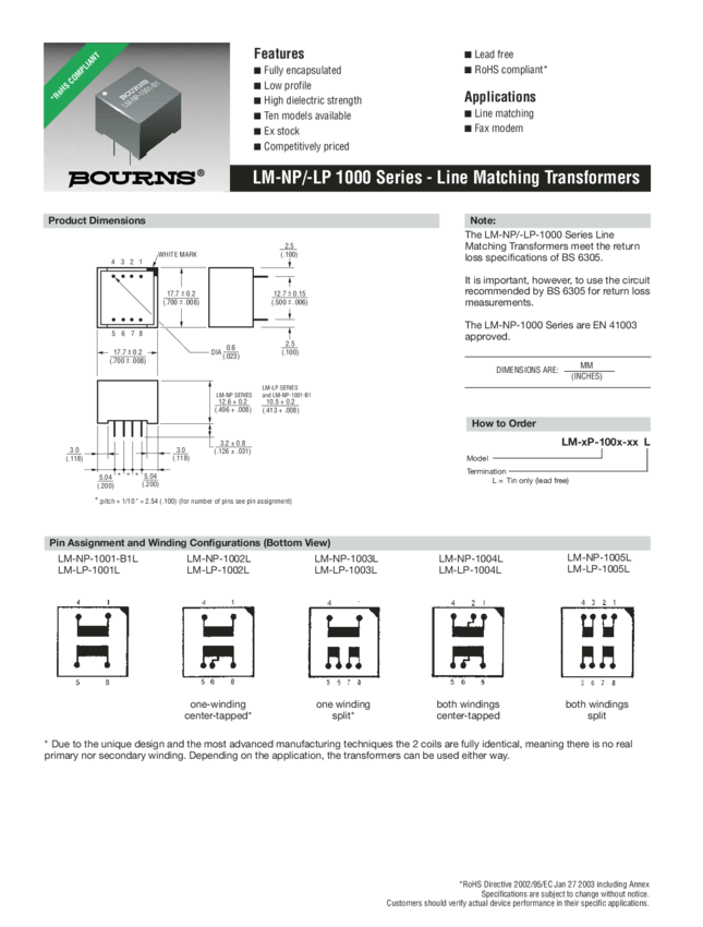 Audio Transformer 1:1 6500VDC 90Ohm Prim. DCR 90Ohm Sec. DCR -0.5dB 2dB Through Hole