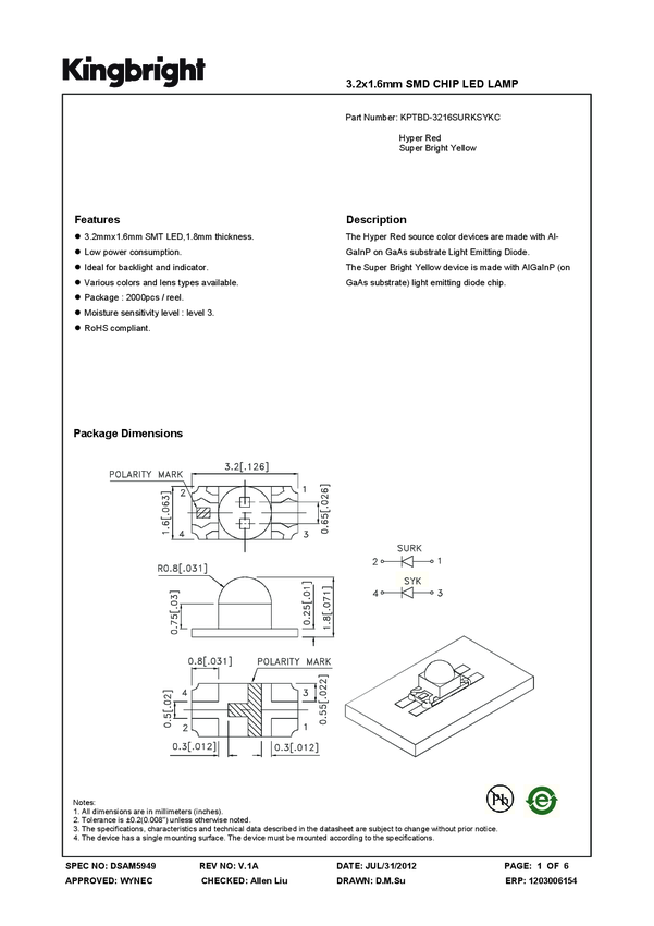 LED Bi-Color Red/Yellow 650nm/590nm Chip LED 4-Pin SMD T/R