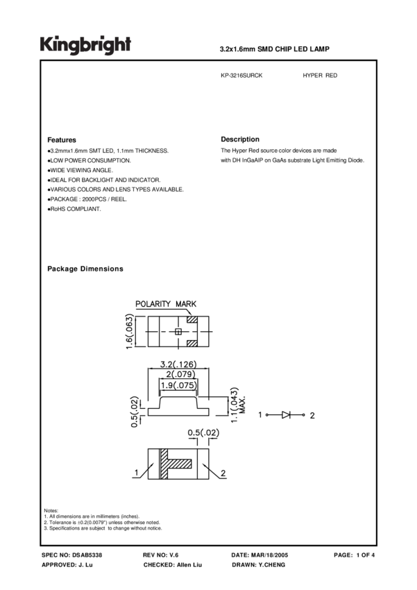 LED Uni-Color Red 650nm 2-Pin Chip LED T/R
