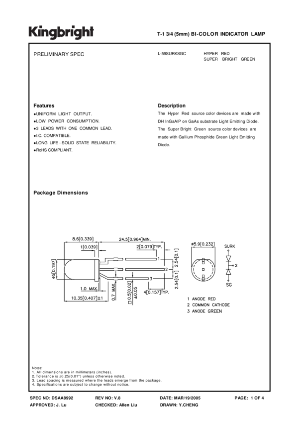 LED Bi-Color Green/Red 565nm/650nm 2-Pin T-1 3/4