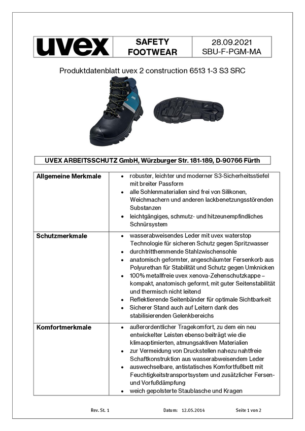 uvex 2 construction 6513345 Buty ochronne S3 Rozmiar buta (EU): 45 czarny, niebieski 1 par(a)
