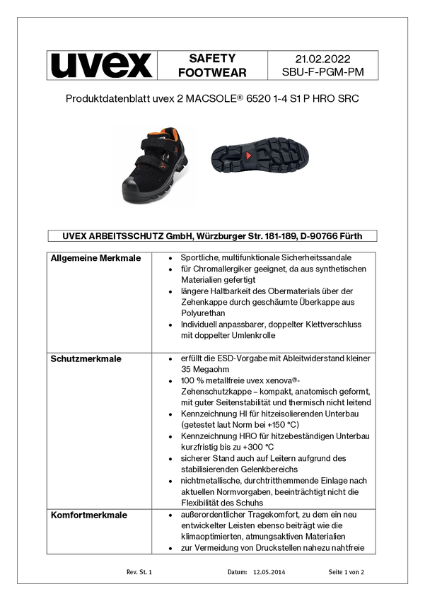 uvex 2 MACSOLE® 6520239 ESD Sandały ochronne S1P Rozmiar buta (EU): 39 czarny, pomarańczowy 1 par(a)
