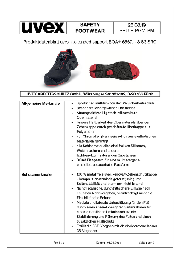 uvex 6567 6567236 Obuwie ochronne S3 Rozmiar buta (EU): 36 czarno-czerwony 1 par(a)
