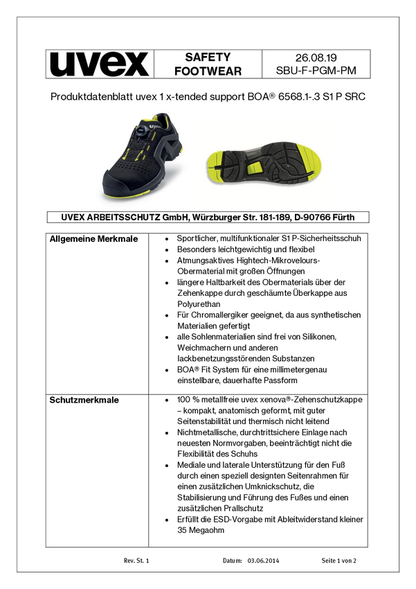uvex 6568 6568236 Obuwie ochronne S1P Rozmiar buta (EU): 36 czarny/żółty 1 par(a)