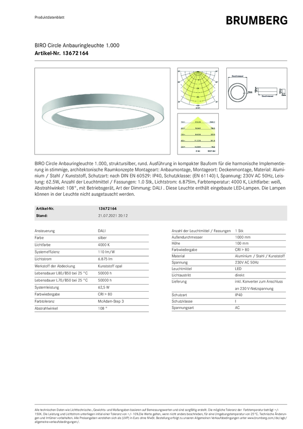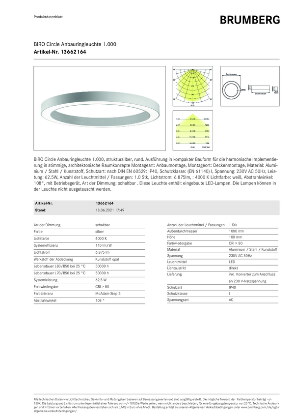 Lampa sufitowa LED Brumberg 13672164 13672164 63 W 6562 lm srebrny