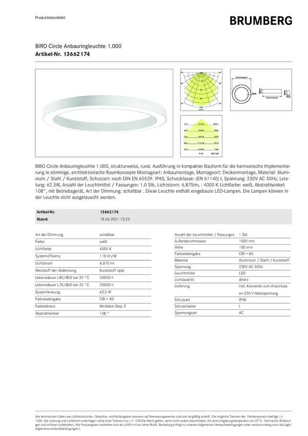 Lampa sufitowa LED Brumberg 13662174 13662174 63 W 6562 lm biały