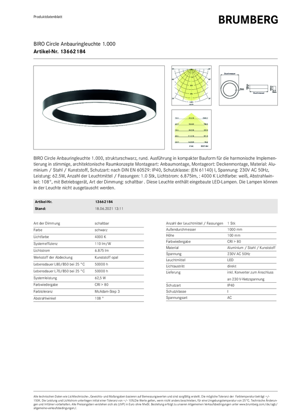 Lampa sufitowa LED Brumberg 13672184 13672184 63 W 6562 lm czarny