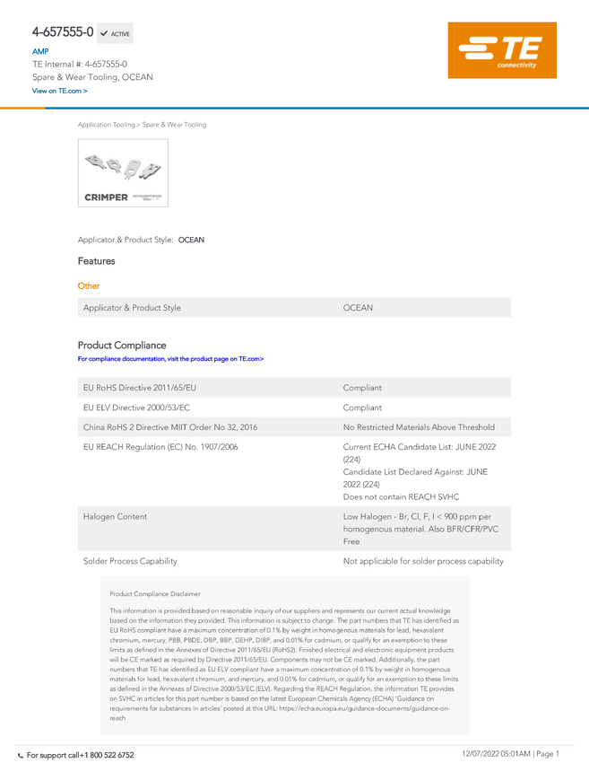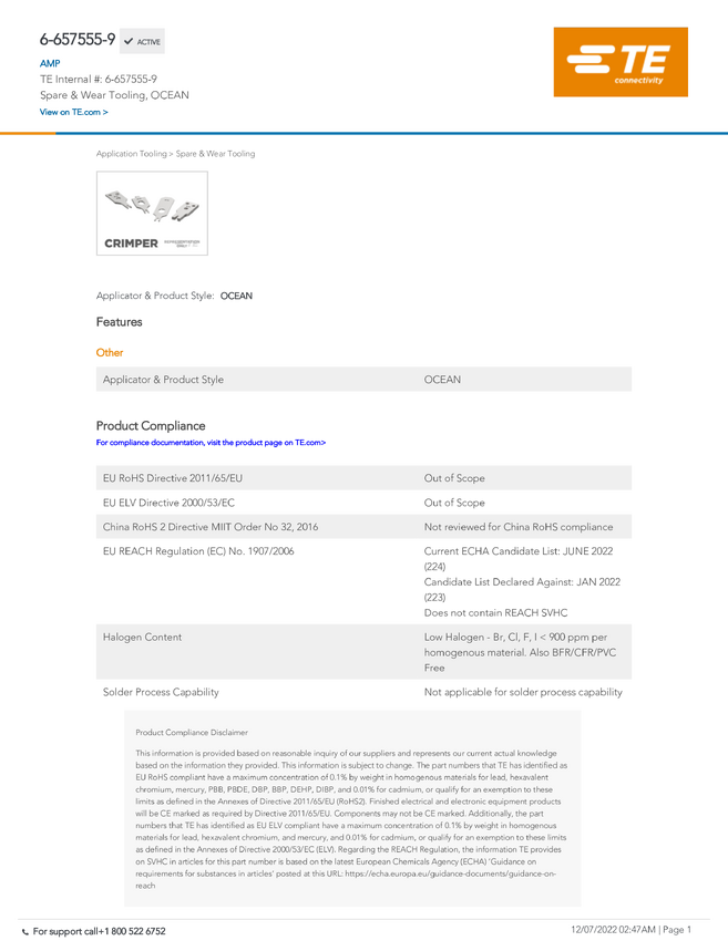 TE Connectivity TE AMP Assembled Applicators 657912-1