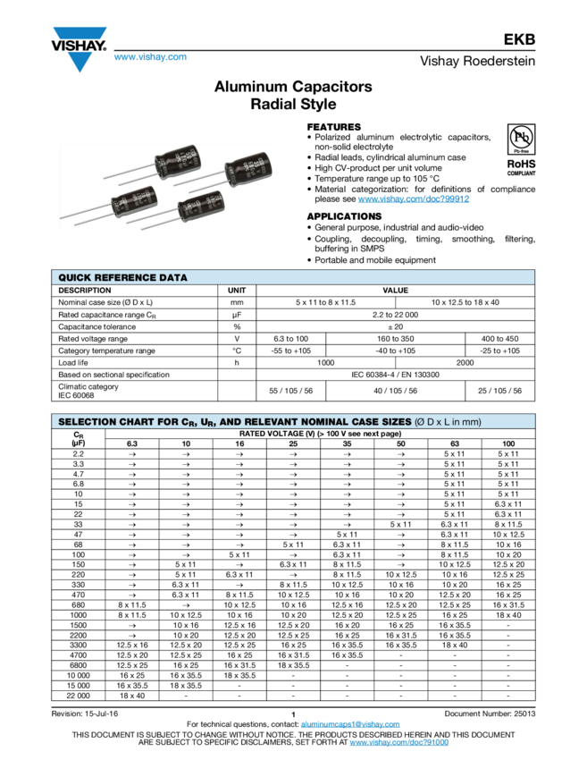 Cap Aluminum 470uF 50V 20% (10 X 20mm) Radial Cylindrical Case 5mm 657mA 2000 hr 105°C Ammo Pack