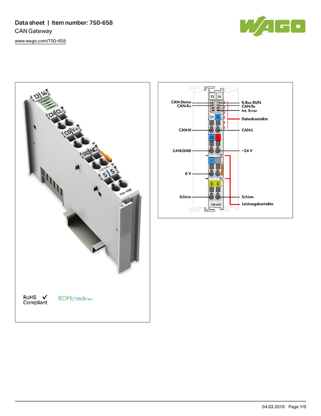 WAGO 750-658 Bramka CAN PLC 1 szt.