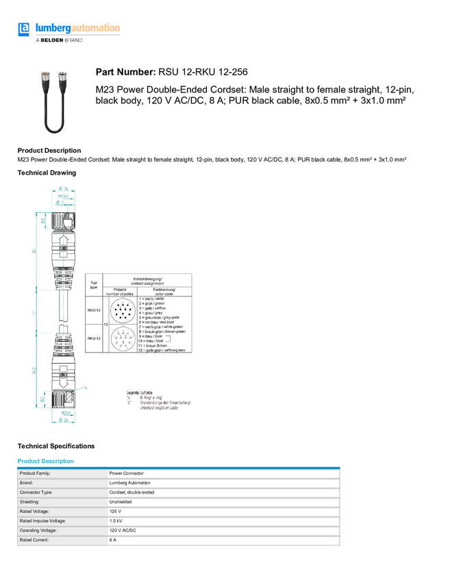Lumberg Automation 65810 Kabel połączeniowy czujnika/aktuatora M23 złącze męskie proste, złącze, proste 20.00 m Ilość pi