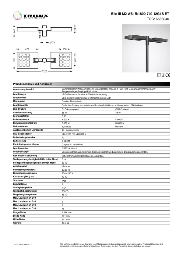 Trilux Elle IV-AB1 #6584540 6584540 Oświetlenie górne LED LED brak 34 W antracytowy