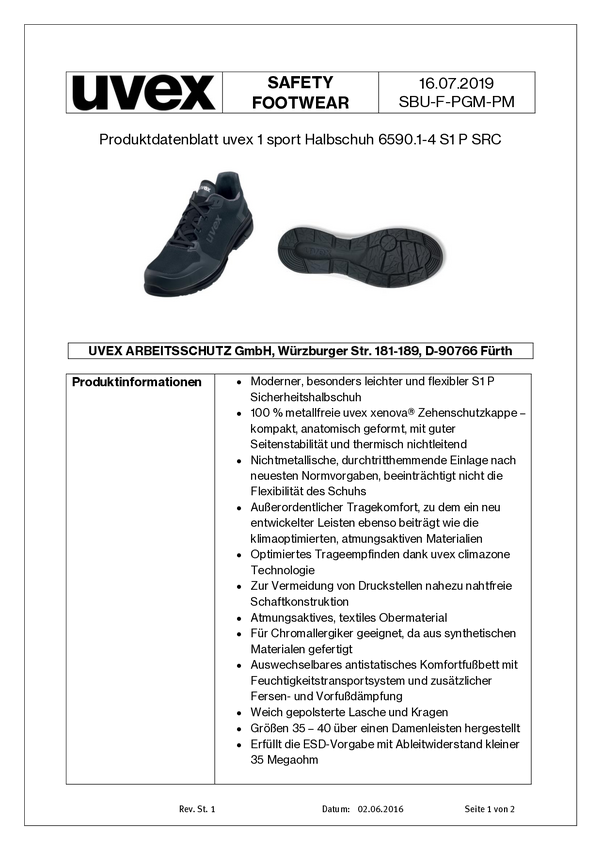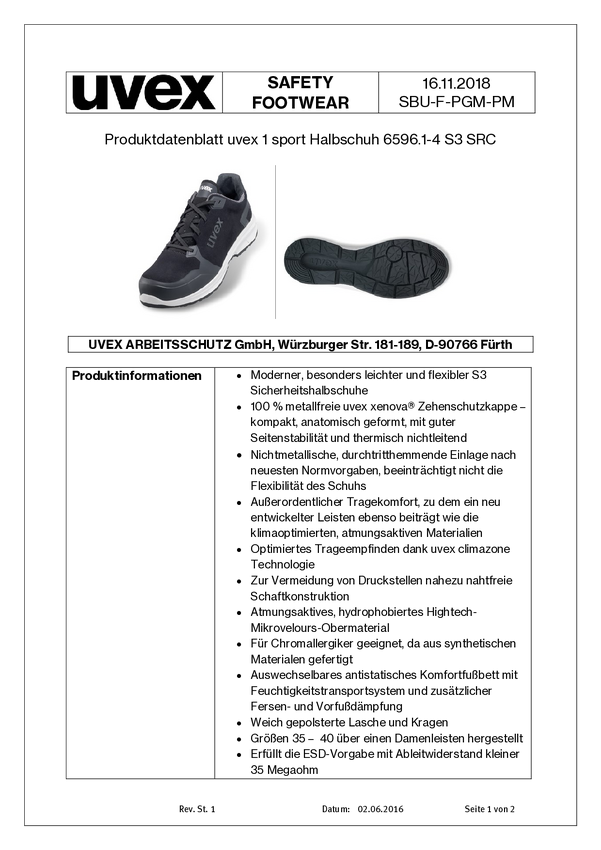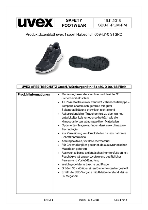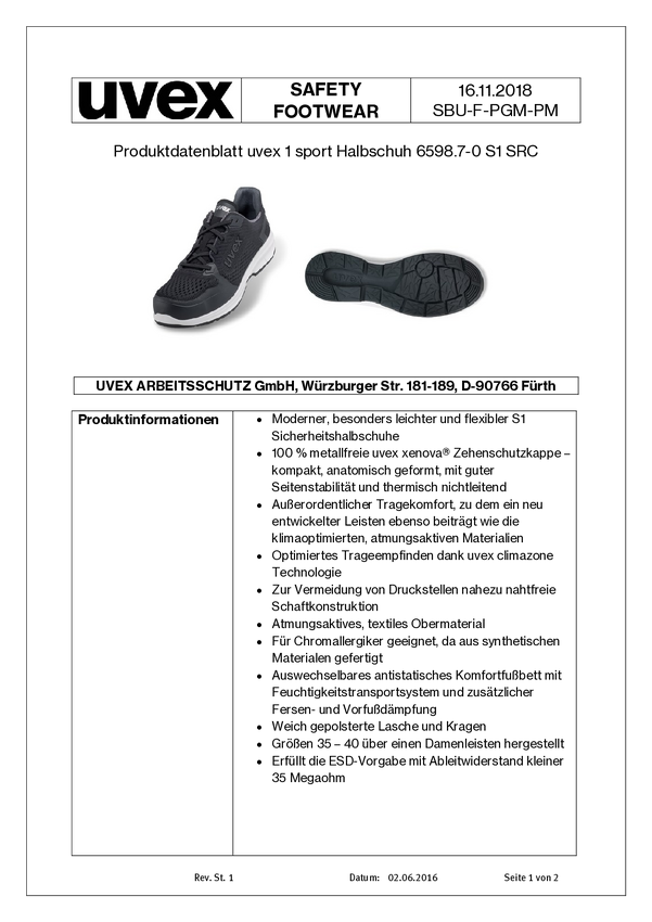 uvex 6598 6598835 Obuwie ochronne S1 Rozmiar buta (EU): 35 czarny 1 par(a)