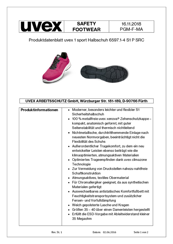 uvex 6597 6597338 Obuwie ochronne S1P Rozmiar buta (EU): 38 jagodowy 1 par(a)