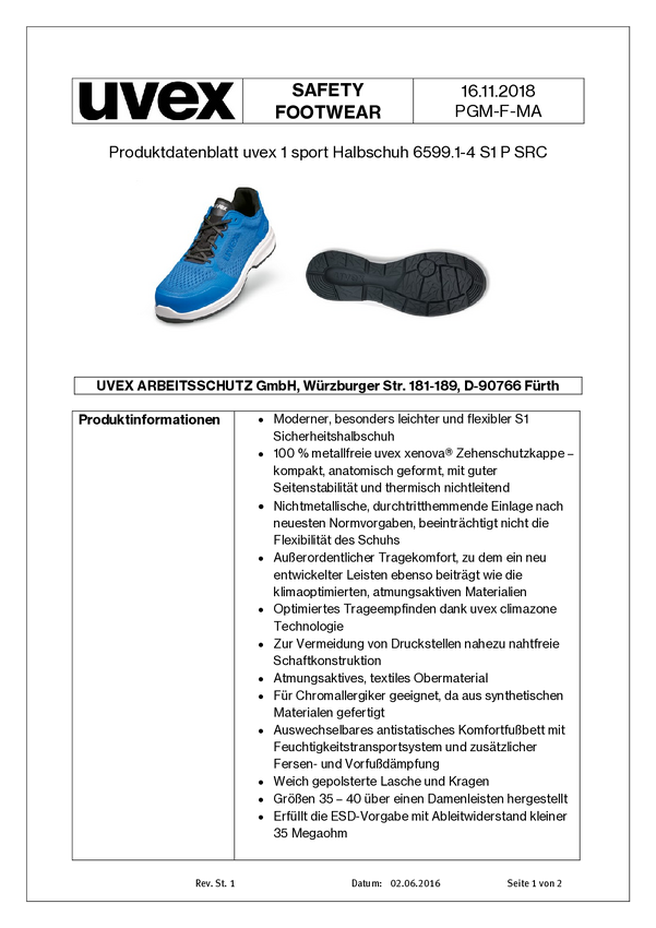 uvex 6599 6599235 Obuwie ochronne S1P Rozmiar buta (EU): 35 niebieski 1 par(a)