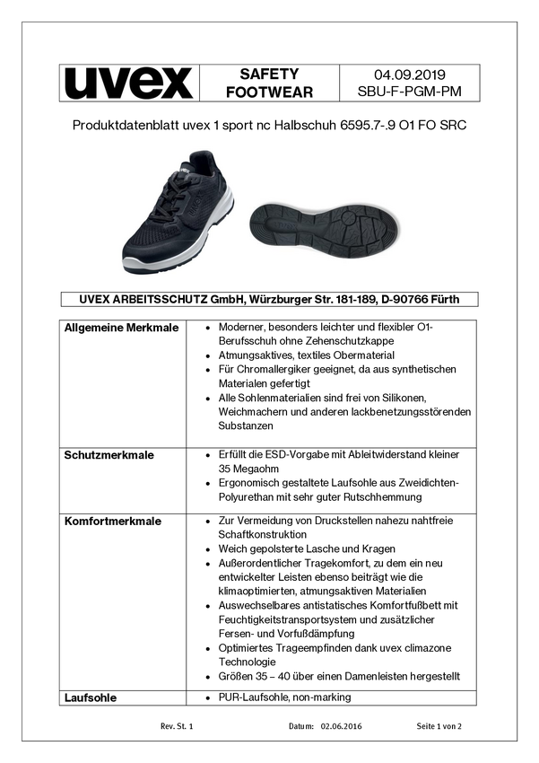 uvex 6595 6595848 Obuwie robocze O1 Rozmiar buta (EU): 48 czarny 1 par(a)