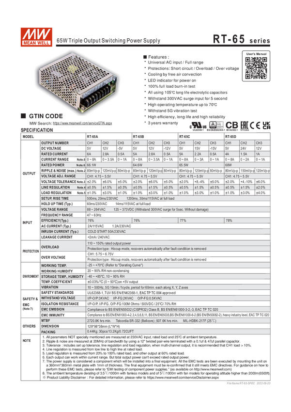 Zasilacz MEAN WELL RT-65B 64 W
