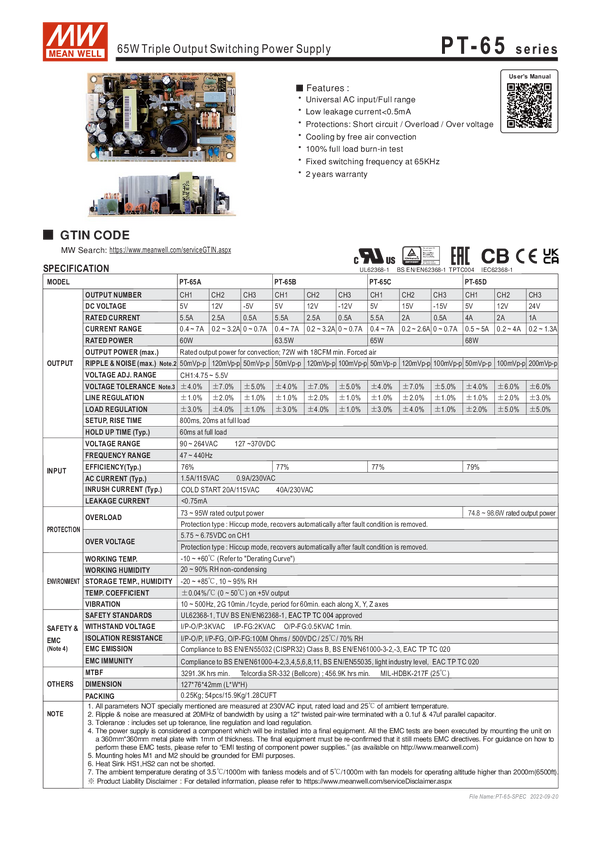 MEAN WELL PT-65B Zasilacz 63 W
