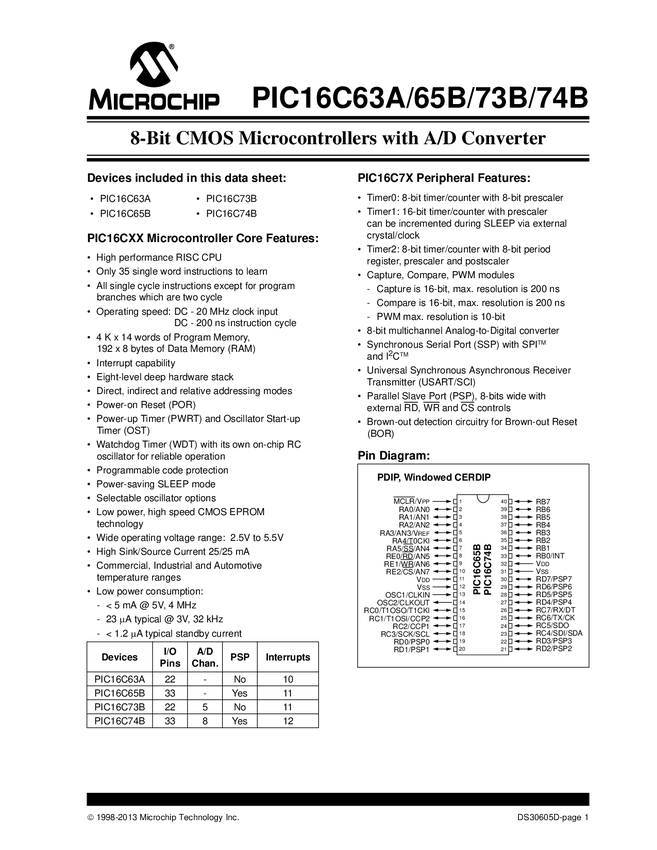 PIC16C63A/65B/73B/74B Datasheet