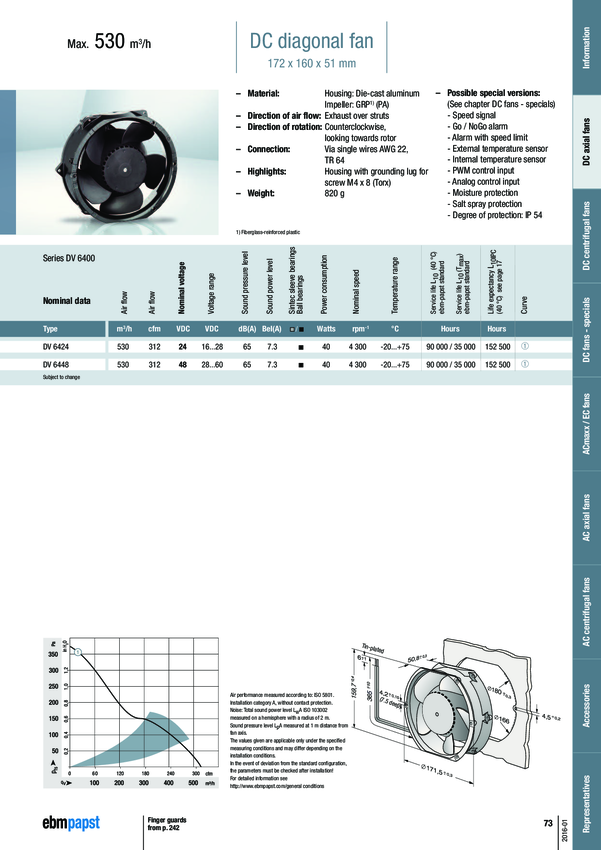 DC Fan Ball Bearing 48V 20W 6000RPM 182.4CFM 65dB Flange Mount
