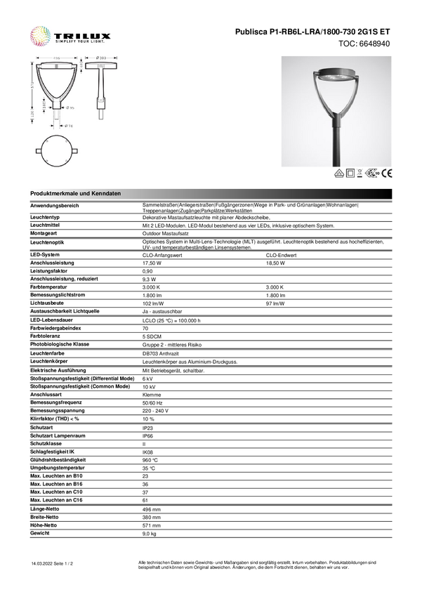 Trilux Publisca P1 #6645340 6645340 Oświetlenie górne LED LED brak 18.5 W antracytowy