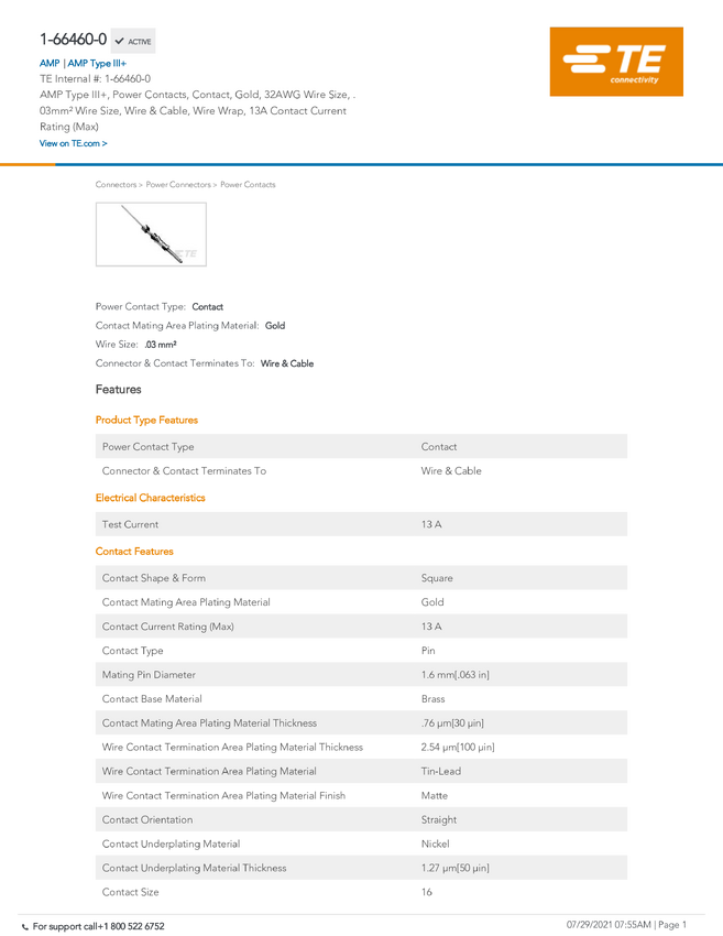 TE Connectivity 1-66460-0 TE AMP Multimate Contacts, 1 szt.