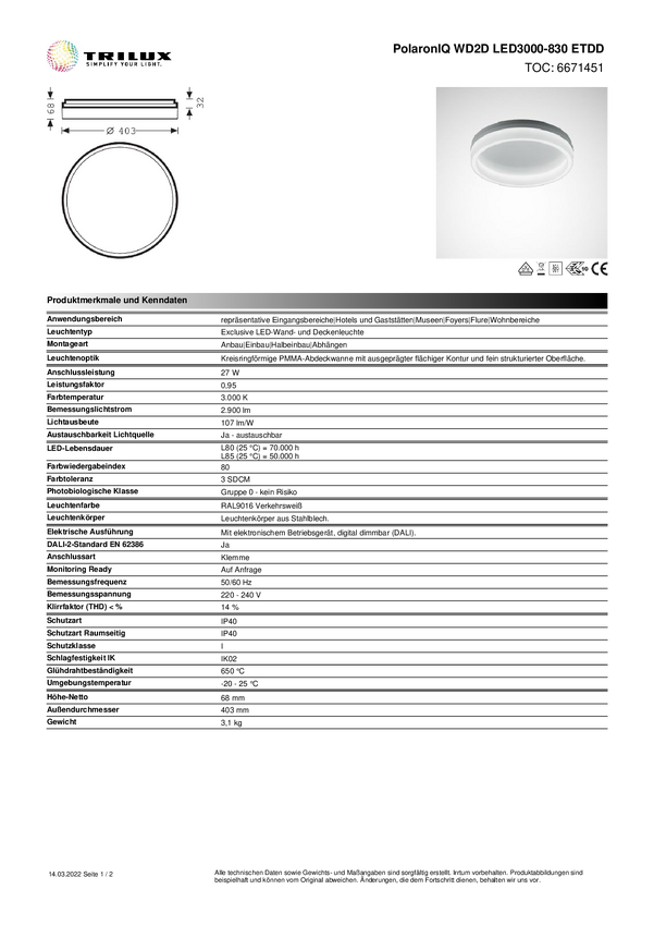 Lampa sufitowa LED Trilux PolaronIQ W #6671451 6671451 27 W 2900 lm biały