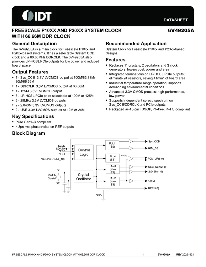 Clock Generator for Freescale P10xx and P20xx System Clock with 66.66M DDR Clock