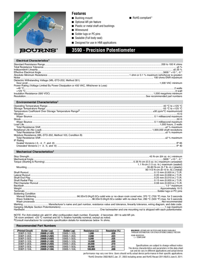 Potencjometr przew.plastyk Servo IP55 śr.koł. 66mm; śr.całk. 87mm; gł.50mm; gł.ze złączem herm. 118mm; oś. 6mm dł. 15mm; kąt.el.350 st; kąt mech 360 st 3W/ 70 st.; -40+120 st; trwałość 5 M cykli Rez. 5 kohm lin 0,3% CPP-45RBN has been changed new model CP-45FRBN. Diference is only standard linearity: CPP-45RBN was +-0,3% CP-45FRBN is +-0,1% Następcą modelu CPP-45RBN o liniowości +-0,3% jest model CP-45FRBN o liniowości +-0,1%