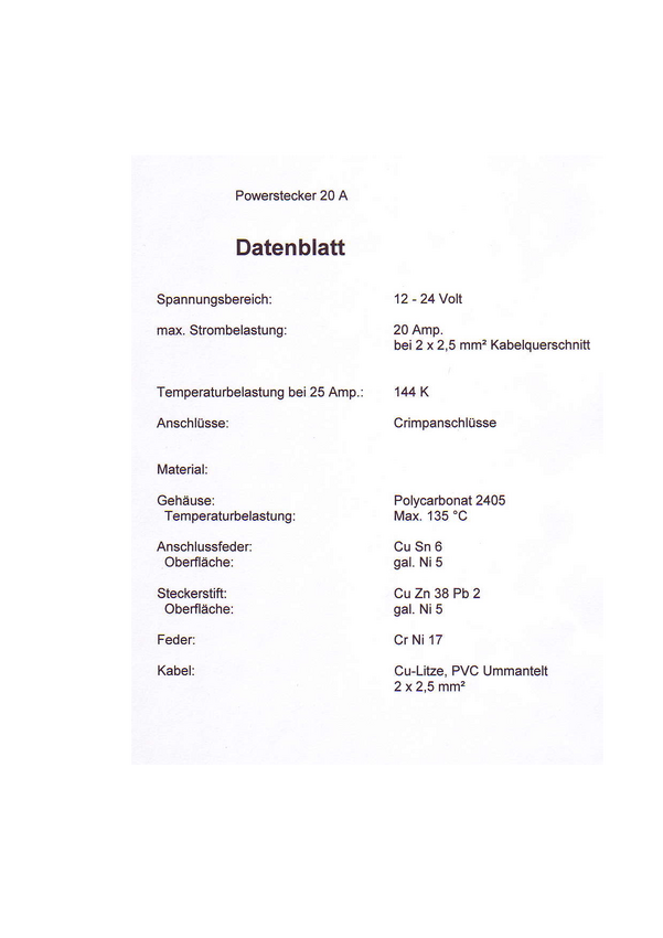 Kabel zasilający samochodowy ProCar, 20 A, 1,2 m, 12 V