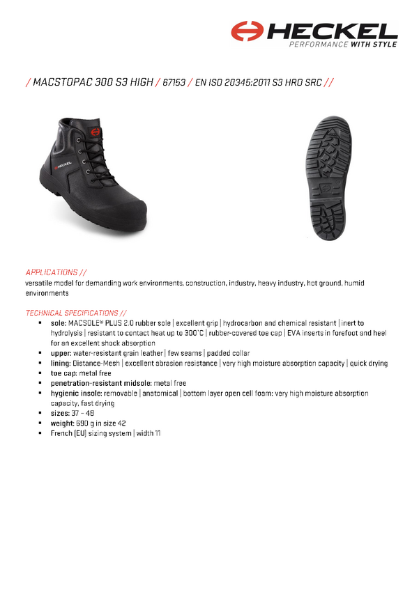 Heckel MACSTOPAC 300 S3 HIGH 6715337 Buty ochronne S3 Rozmiar buta (EU): 37 czarny 1 par(a)