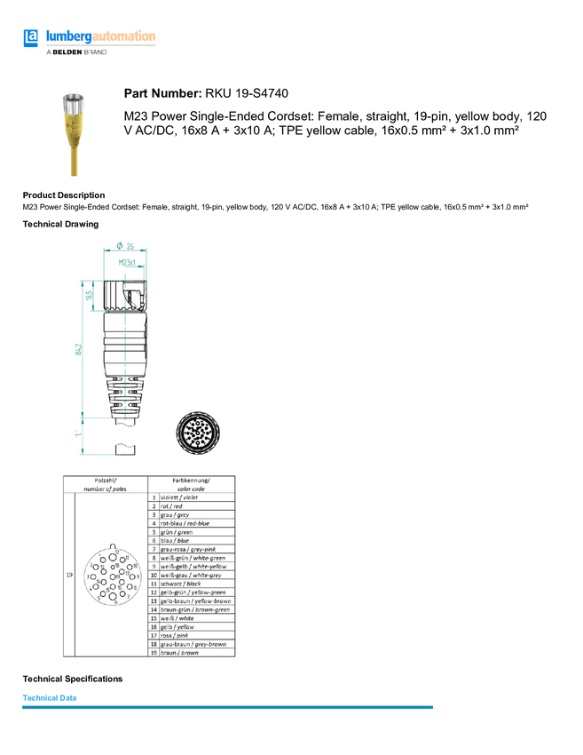 Lumberg Automation 6713 Złącze konfekcjonowane czujnika/aktuatora M23 złącze, kątowe 15.00 m Ilość pinów: 19 1 szt.