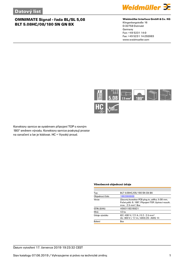 Weidmüller 1992000000 Złącze męskie PCB Łączna ilość styków 8 672 szt.