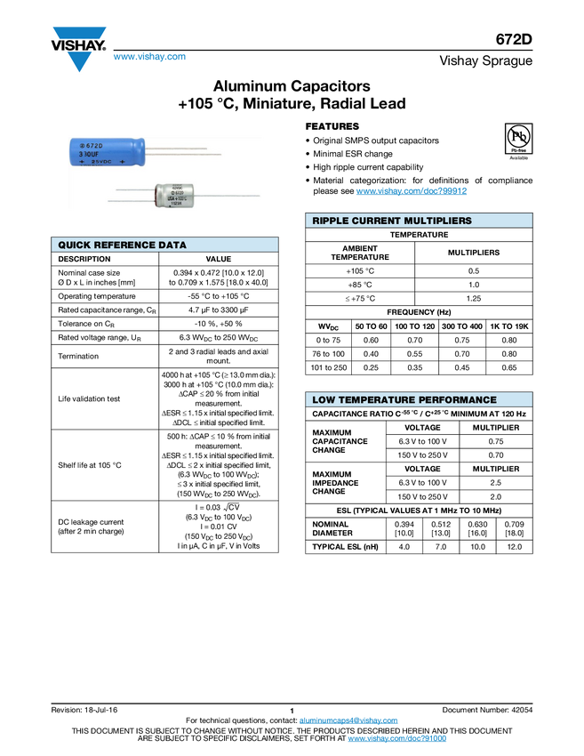 Aluminum Capacitors +105 °C, Miniature, Radial Lead