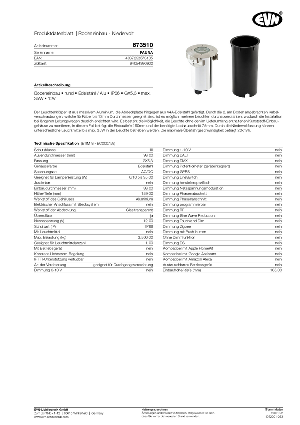 Lampa podłogowa do zabudowy EVN 673510 673510 35 W