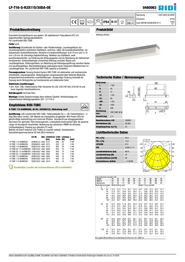 Lampa sufitowa RIDI 450063 450063 6730 lm biały