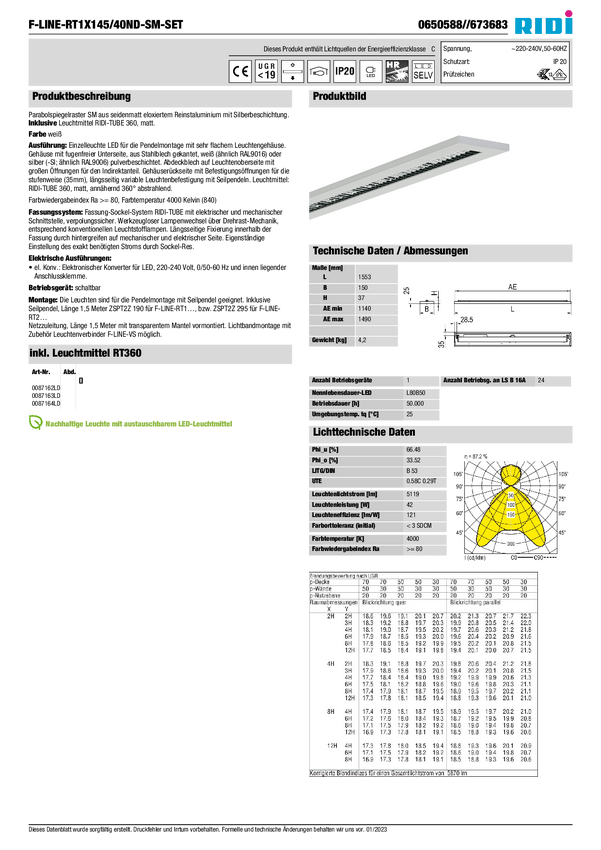 Lampa sufitowa, podwieszana RIDI 0660580//673683 0660580//673683 biały