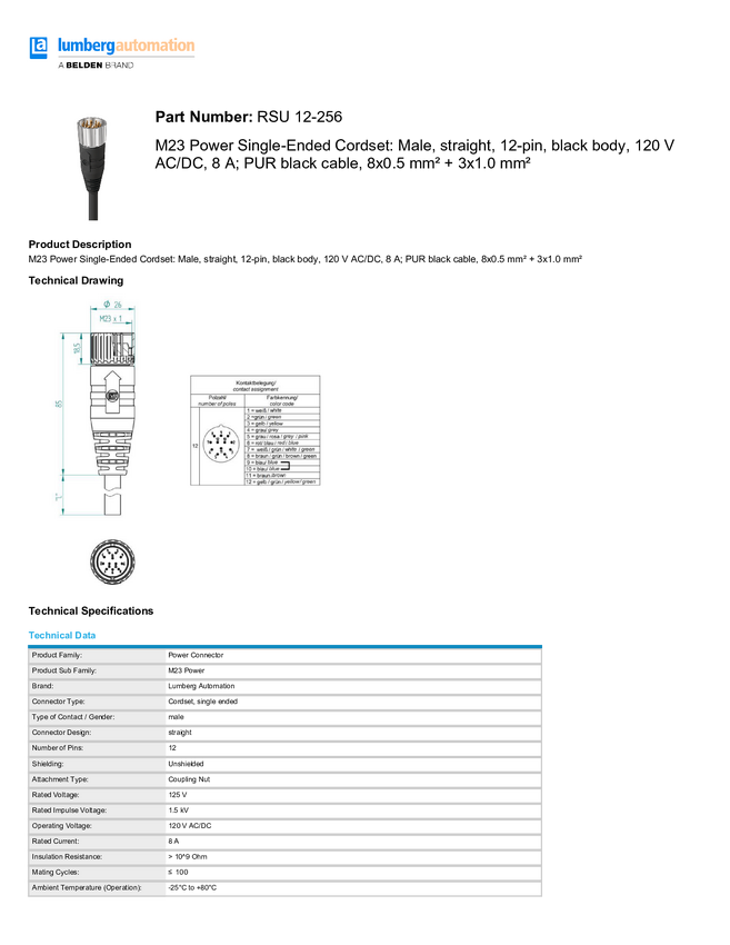 Lumberg Automation 6739 Złącze konfekcjonowane czujnika/aktuatora M23 złącze męskie proste 1.00 m Ilość pinów: 12 1 szt.
