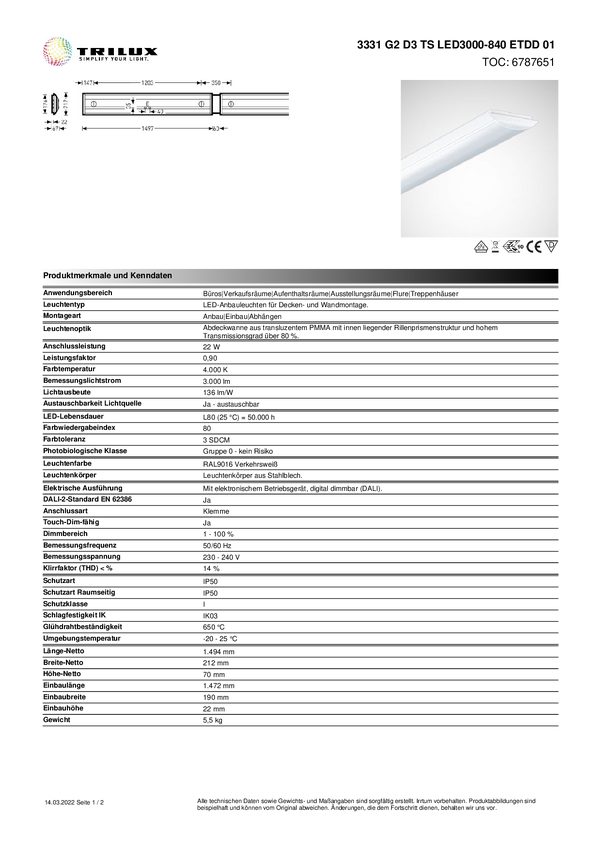 Lampa sufitowa LED Trilux 3331 G2 D3 #6787651 6787651 22 W 3000 lm biały