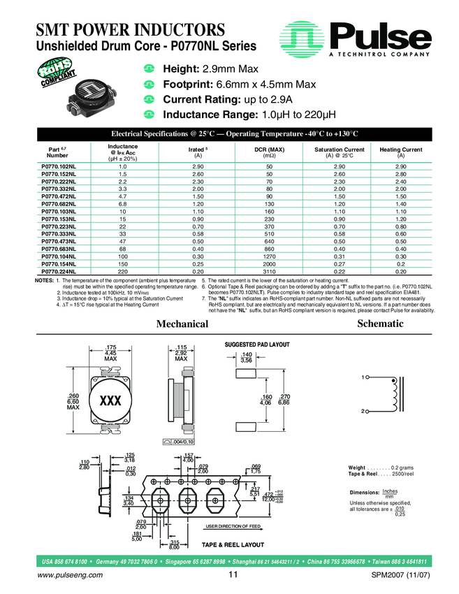 Ind Power Unshielded Wirewound 15.2uH 20% 100KHz 3.6A T/R