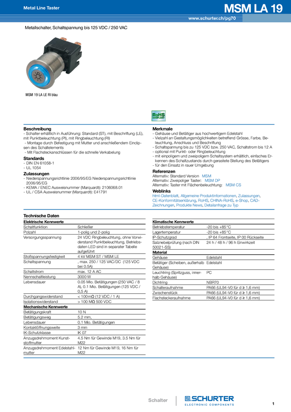 MSM19 LA ST SF 12 A @250VAC 2P