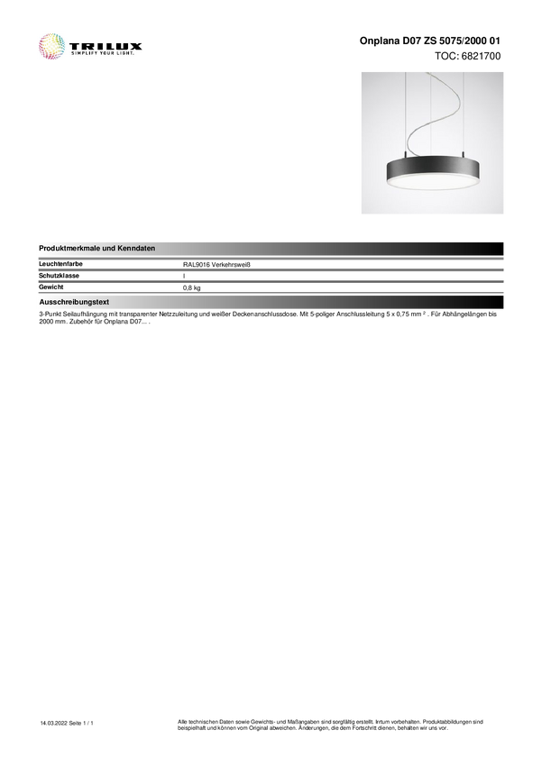 Trilux 6821700 Podwieszenie linowe Onplana D07 1 szt.