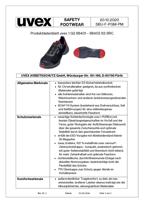 uvex 1 G2 6840247 ESD Buty ochronne S3 Rozmiar buta (EU): 47 czerwono-czarny 1 par(a)