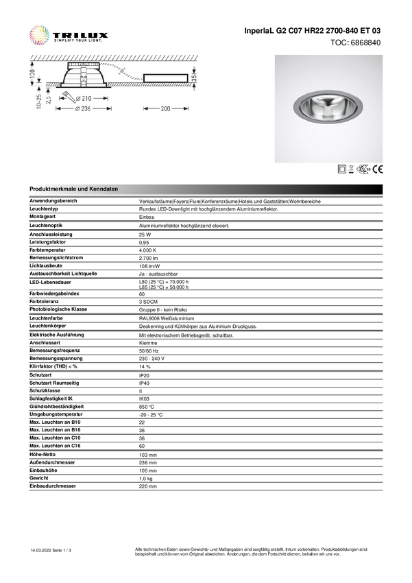 Oświetlenie wewnętrzne LED Trilux InperlaL G2 #6868840 6868840 25 W