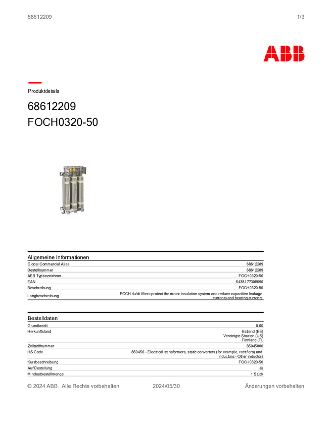 Dławik wyjściowy ABB FOCH0320-50